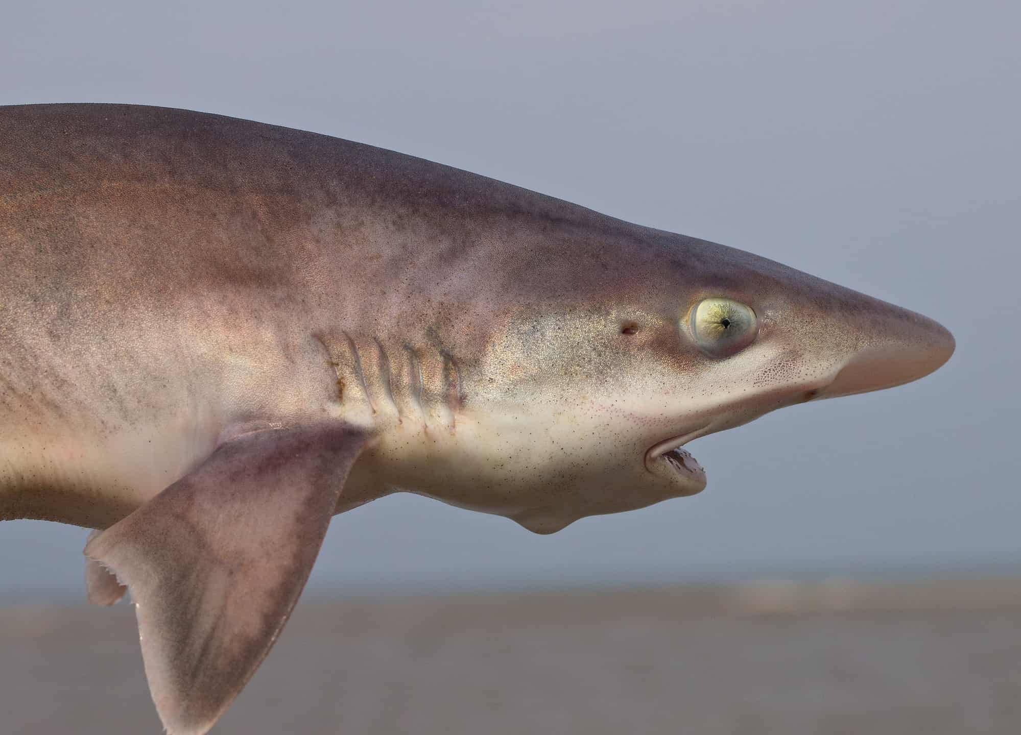 Sebbene non sia piccolo come alcuni degli altri in questo elenco, lo squalo segugio della Florida cresce solo fino a circa 3,6 piedi di lunghezza. Noterai questo squalo per le sue lunghe pinne pettorali, il muso appuntito e la coda asimmetrica. È tipicamente grigio o marrone grigiastro sulla parte superiore con un ventre color crema. Hanno un corpo lungo e snello e due pinne dorsali, entrambe piuttosto lunghe rispetto al resto del corpo.