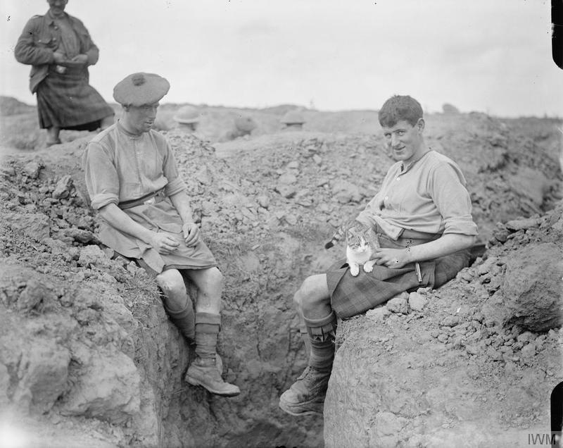 I soldati trovarono gatti durante la prima guerra mondiale e li trattarono essenzialmente come equipaggiamento… occasionalmente anche con animali domestici, ovviamente.