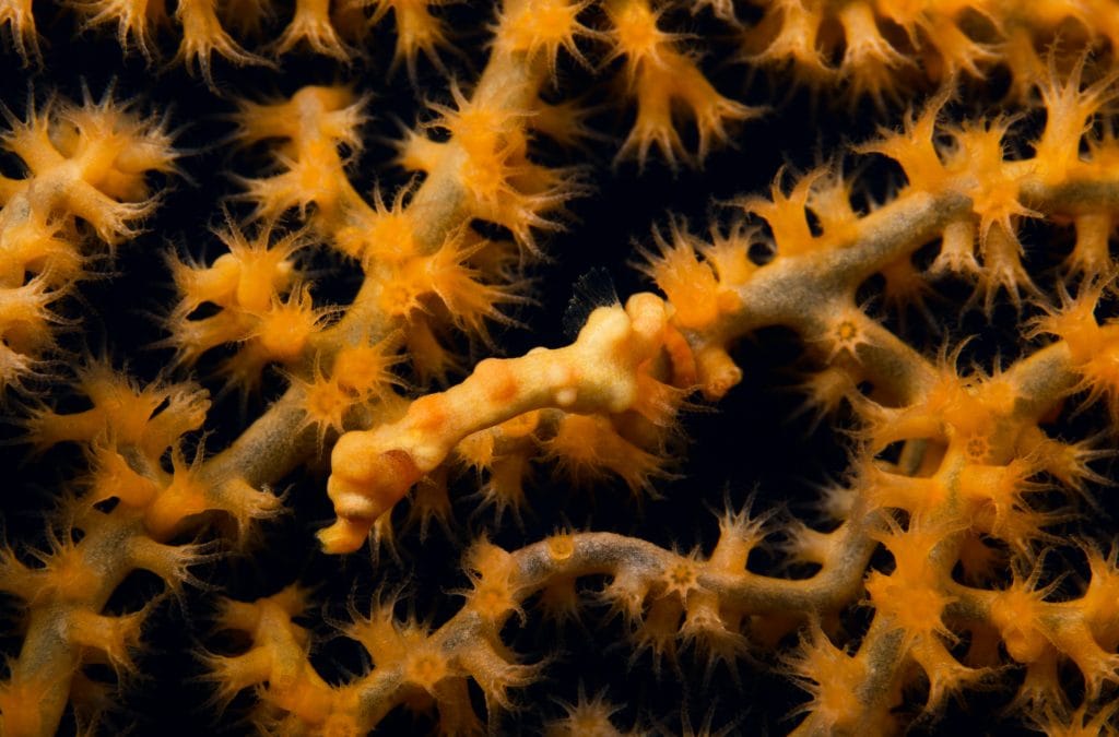 La colorazione aggiunge un altro livello all’illusione. Gli individui sono tipicamente sfumature di giallo, arancione o bruno-rossastro, che ancora una volta si avvicinano molto al corallo su cui vivono. Questa non è una variazione casuale. Studi e osservazioni sul campo suggeriscono che i singoli cavallucci marini sono altamente specializzati nei confronti del corallo che li ospita, raramente lo lasciano e ne imitano perfettamente il colore nel tempo.